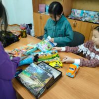 Акция негізінде ұйым № 12 жатақханада тұратын балалармен танысып, қызықты «Контакт», «Саңырау телефон», «Қолтырауын» ойындарын ойнатты. Балаларға ойынға қатысқаны үшін, тәтті кәмпиттер, көрнекілік құрал – жабдықтар мен оқу құралдары таратылды.